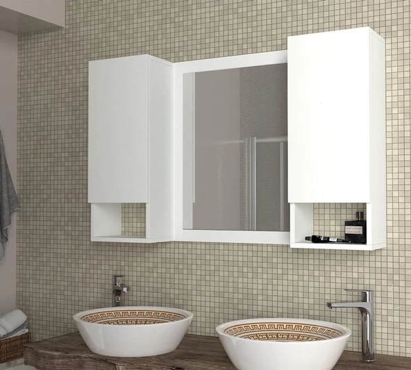 Dekorister Simon Banyo Üst Dolabı Aynalı Etajer Beyaz