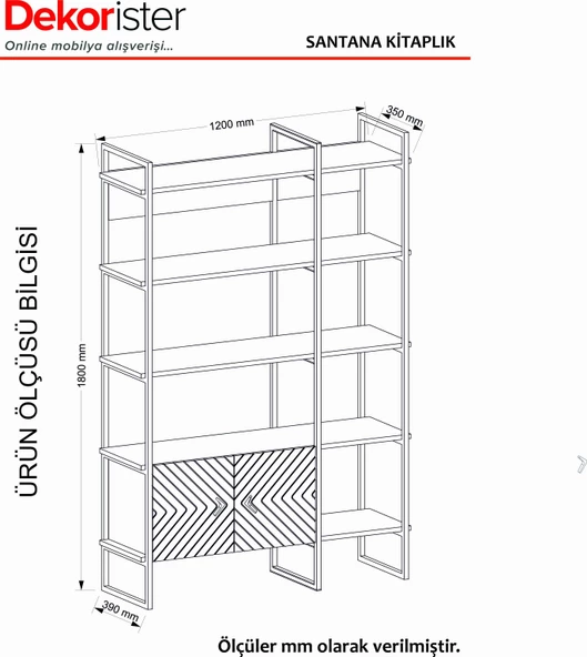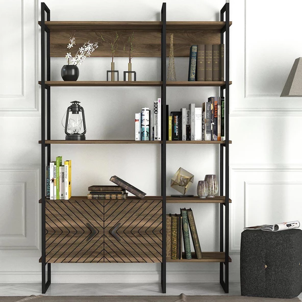 Dekorister Exclusive Santana Demir Kitaplık Ceviz