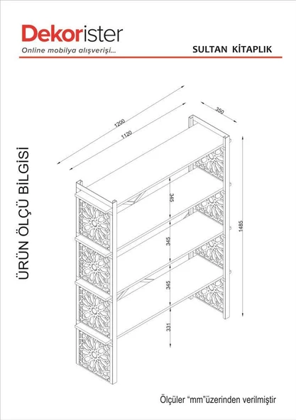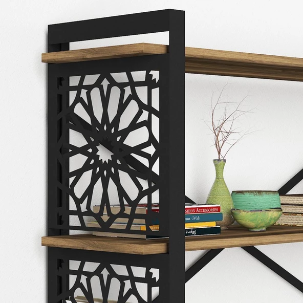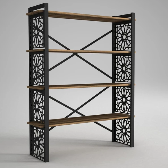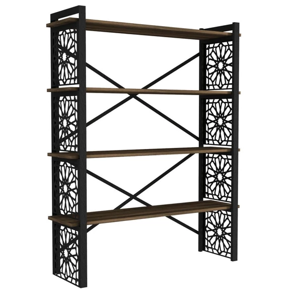 Dekorister Sultan Ferforce Lazer Kesim Metal Kitaplık Ceviz