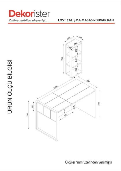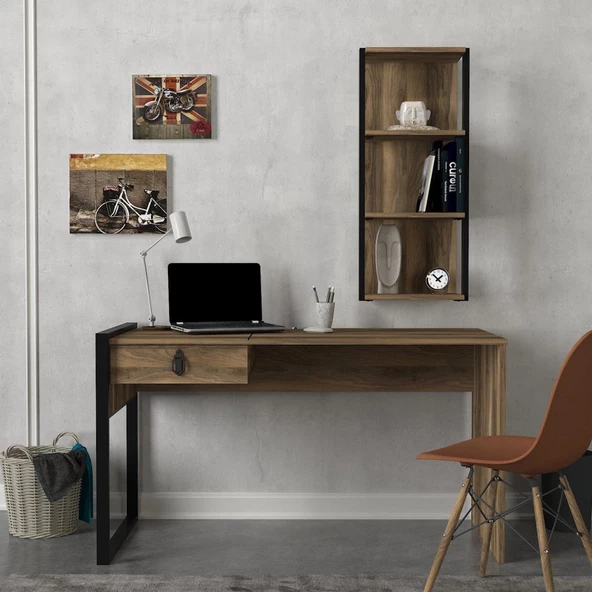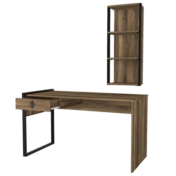 Dekorister Exclusive Lost Çalışma Masası + Duvar Rafı Ceviz