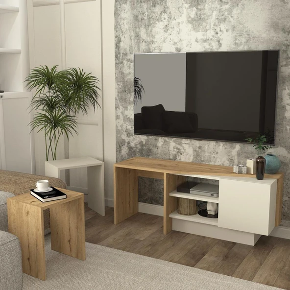 Dekorister Geacles Tv Ünitesi Beyaz-Ceviz