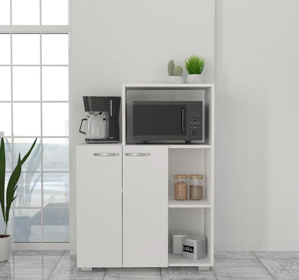 Dekorister Charlotta Çok Amaçlı Dolap Mikro Dalga Dolabı Beyaz-Cordoba