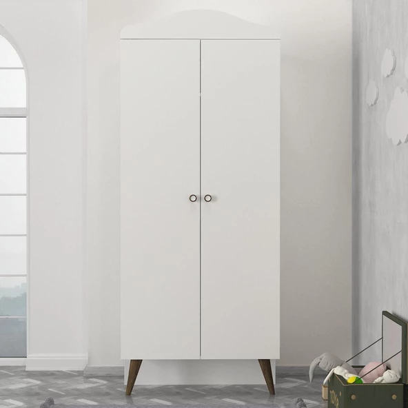 Dekorister Lora Baby 2 Kapaklı Dolap Bebek Odası Gardrop Beyaz - Ceviz
