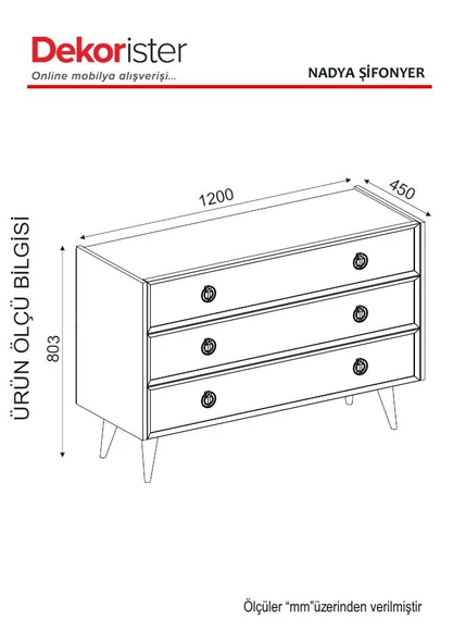 Dekorister Exclusive Lost Metal 3 Çekmeceli Şifonyer Ceviz