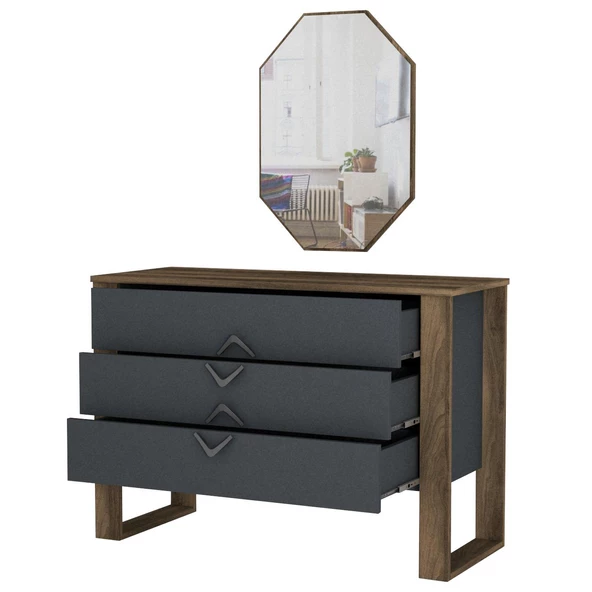 Dekorister Exclusive Bumerang Aynalı Şifonyer Ceviz-Antrasit