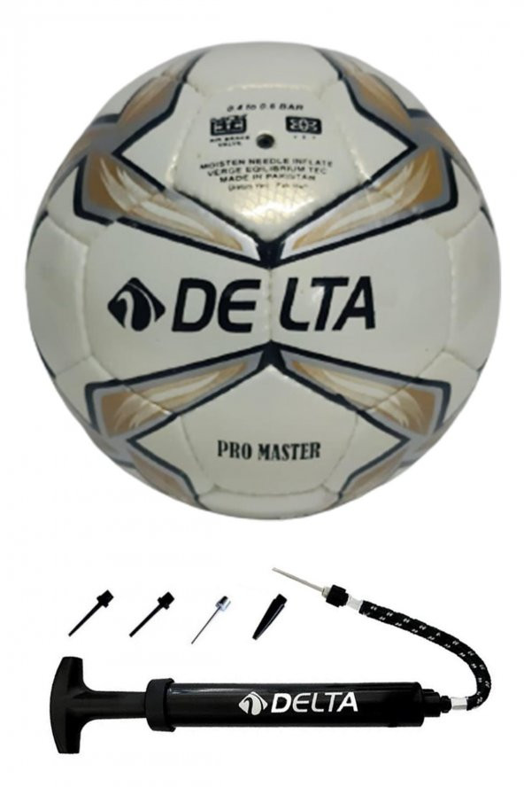 Delta Pro Master El Dikişli 5 Numara Dura-Strong Futbol Topu + Çok Fonksiyonlu Top Pompası İkili Set