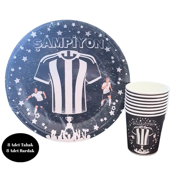 Siyah Beyaz Taraftar Karton Tabak Bardak 8 li Set