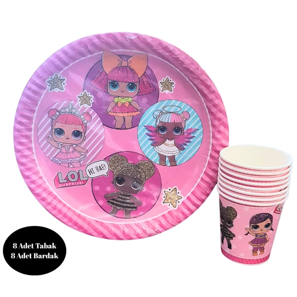 Lol Bebek Karton Tabak Bardak 8 li Set