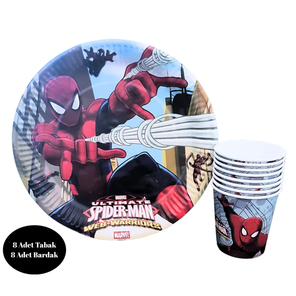 Örümcek Adam Karton Tabak Bardak 8 li Set