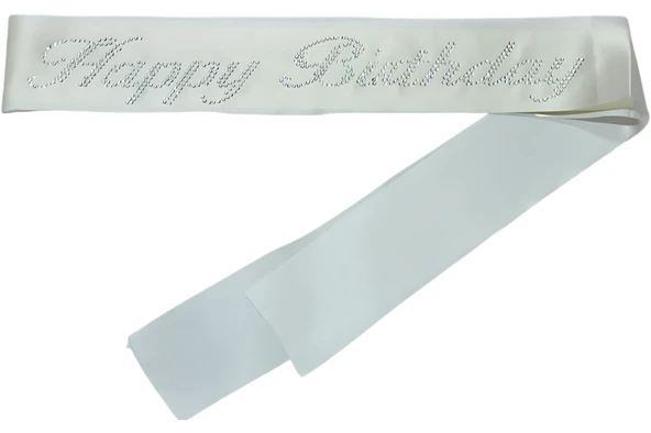 Happy Birthday Kuşak Beyaz Üzeri Gümüş Taşlı