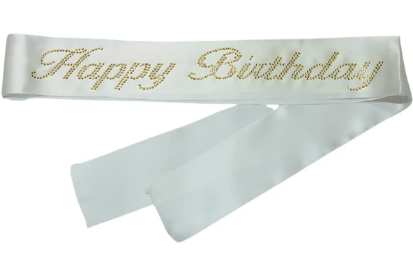 Happy Birthday Kuşak Beyaz Üzeri Altın Taşlı