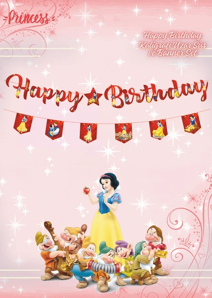 Pamuk Prenses Happy Birthday Kaligrafi ve Banner Set