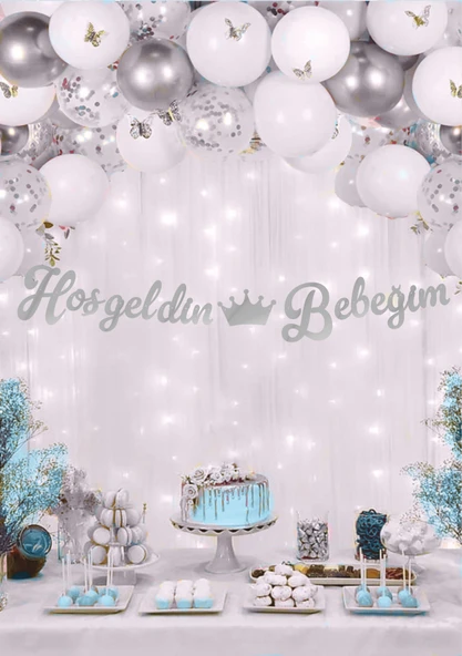 Hoşgeldin Bebeğim Gümüş Kaligrafi Banner