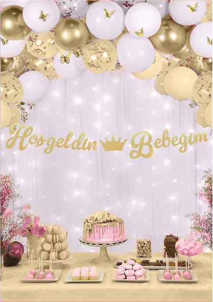 Hoşgeldin Bebeğim Altın Kaligrafi Banner