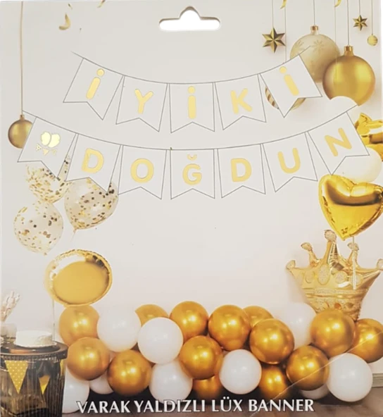 Beyaz Altın Yaldızlı İyiki Doğdun Uzar Banner