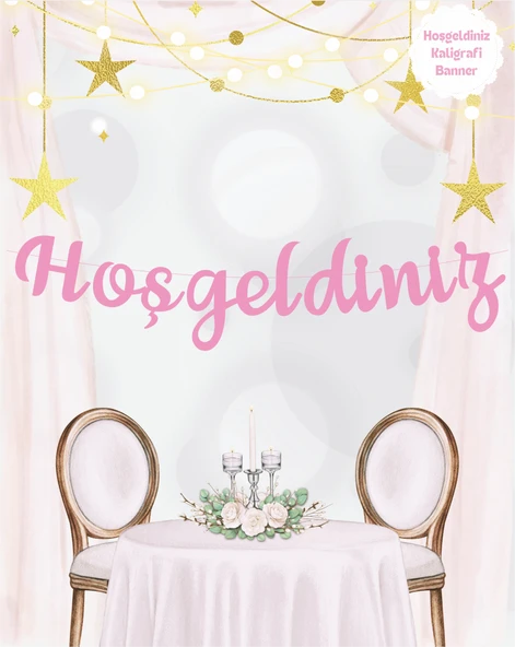 Hoşgeldiniz Pembe Temalı Kaligrafi Banner