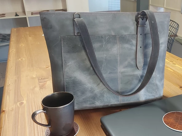 Hakiki Deri Gri Omuz Çantası – Hand Serisi | Şık ve Fonksiyonel Tasarım