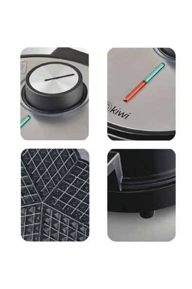 Kiwi Ksm-2442 Kalp Desenli Yapışmaz Plakalı Paslanmaz Çelik Waffle Makinesi
