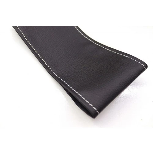 Peugeot 207 2006-2009 Uyumlu Direksiyon Kılıfı Dikmeli Siyah Deri Gri Nakışlı
