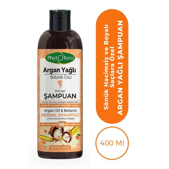 Phytoflora Tuzsuz Hassas Sönük Hacimsiz Ve Boyalı Saçlara Özel Argan Yağlı Bitkisel Şampuan 400 ML