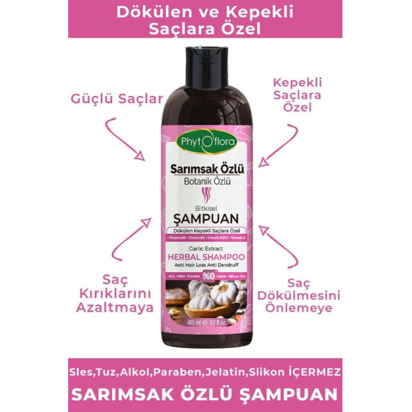 Phytoflora Tuzsuz Yağlı Ve Dökülen ve Kepekli Saçlara Özel Sarımsak Özlü Bitkisel Şampuan 400 ML