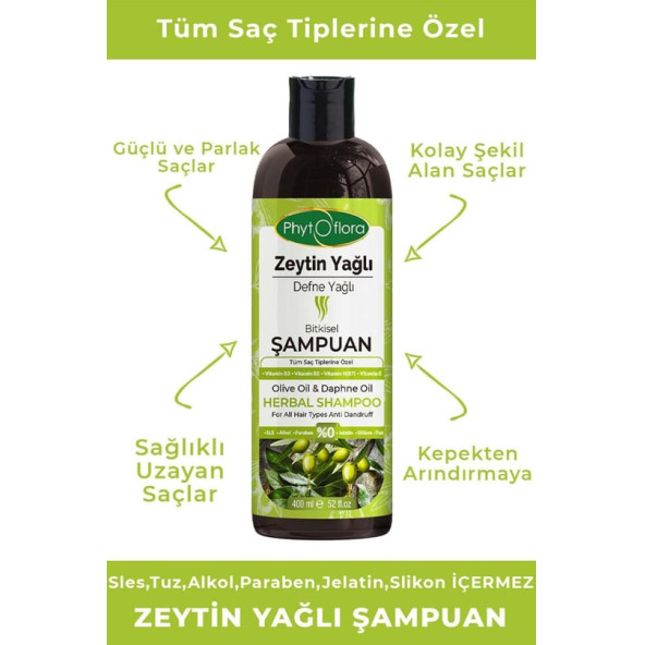 Phytoflora Tuzsuz Tüm Saç Tiplerine Özel Zeytinyağlı Bitkisel Şampuan 400 ML