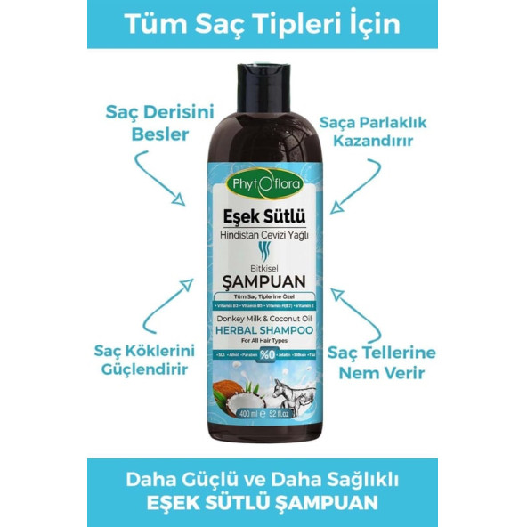 Phytoflora Kepek Karşıtı Tuzsuz Eşek Sütü Ve Hindistan Cevizi Yağlı Bitkisel Şampuan 400 ML