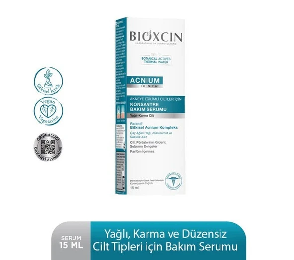 Bioxcin Acnium Karma ve Yağlı Ciltler İçin Konsantre Bakım Serumu 15 ml