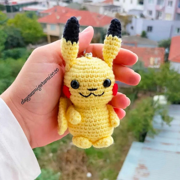 Amigurumi Pikachu anahtarlıklar aksesuar hediyelik çanta araba süsü el emeği Pokemon karakteri