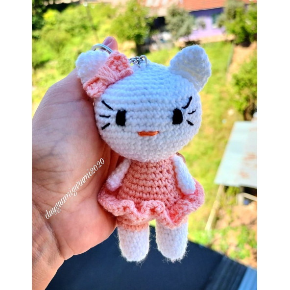 Amigurumi hello kity anahtarlık aksesuar çanta araba süsü hediyelik oyuncak bebek
