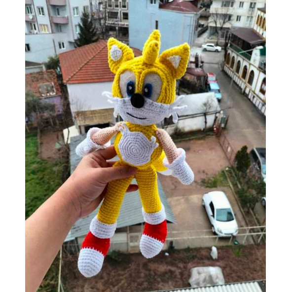 Amigurumi Tails çizgi karakter Sonic arkadaşı kirpi Sonic tails 30 cm hediyelik oyuncak bebek figür