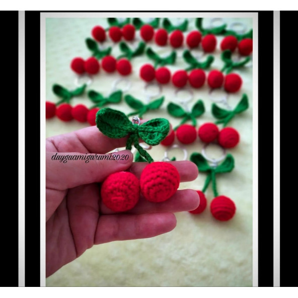 Amigurumi kiraz anahtarlık aksesuar çanta araba süsü doğum günü hediyesi hatıra
