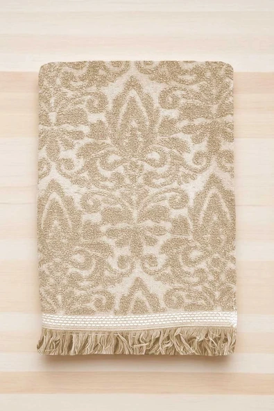 2 Parça Jakarlı Banyo Havlu Takımı %100 Pamuklu 90x150 Cm Arden Bej