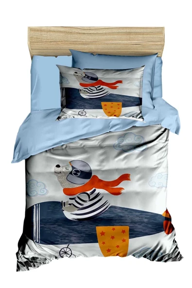 Dijital Baskılı 3d Pamuklu Yenidoğan Bebek Nevresim Takımı Blue Bear