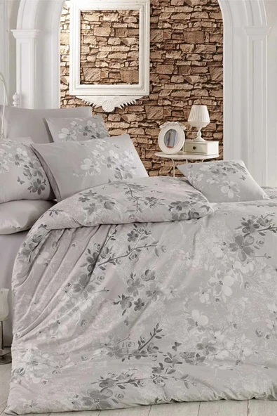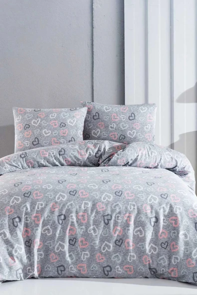 Çift Kişilik Nevresim Takımı Pamuklu Romantik Gri