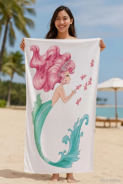 SeaDream Tropikal Desenli Plaj Havlusu 70X140 Cm Denizkızı