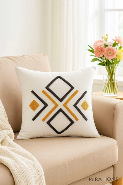 Mira Home Dekoratif Punch Kare Nakışlı Kırlent Kılıfı