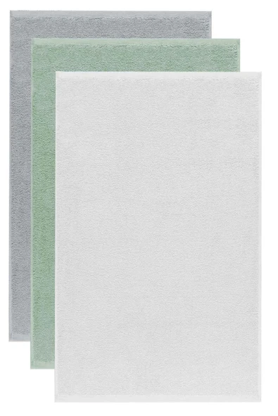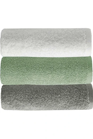 3 lü Düz Renk El Yüz Havlu Seti %100 Pamuklu 50x90 Cm Gri-Yeşil-Beyaz