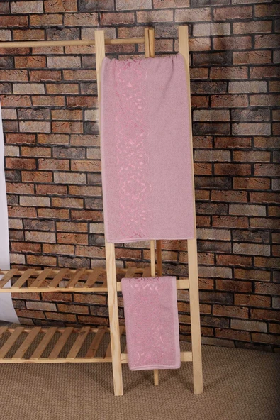 2 Parça %100 Pamuklu Banyo Havlu Seti Sultan Pembe