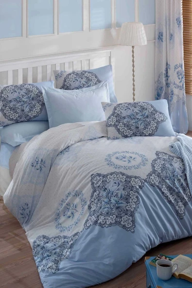 Çift Kişilik Ranforce Nevresim Takımı %100 Pamuklu Şimal Mavi