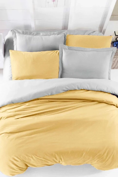 Çift Kişilik Lastikli Çarşaflı Nevresim Takımı Pamuklu Four Season Hardal Gri