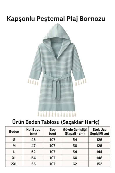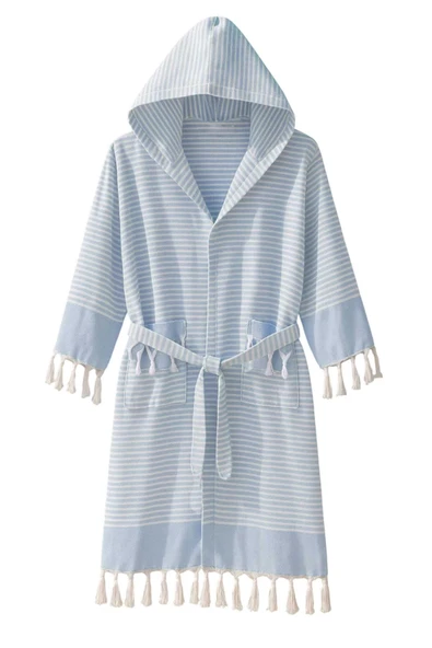 Kapşonlu Unisex Peştamal Plaj Bornozu %100 Pamuklu Marelina Mavi