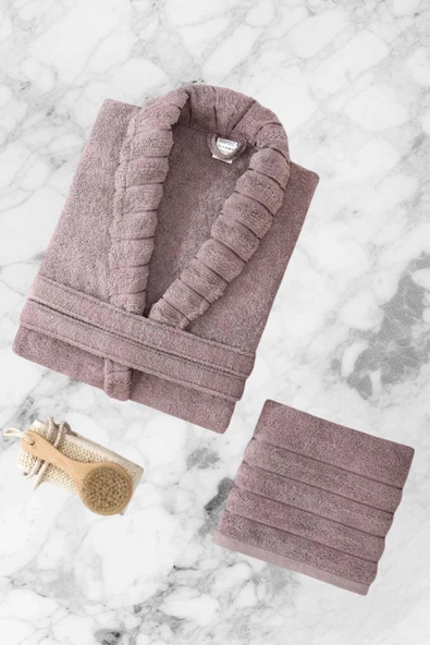 AquaLoom Lüx Kadın Bornoz ve Havlu Seti %100 Pamuklu Mürdüm
