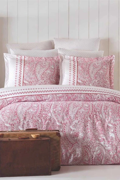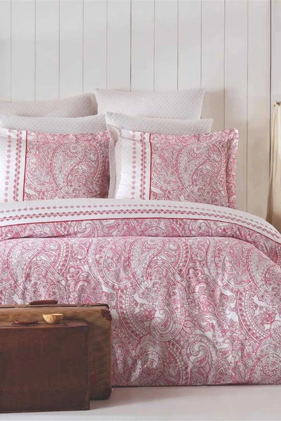 Çift Kişilik Nevresim Takımı Pamuklu Vintage Pembe Paisley