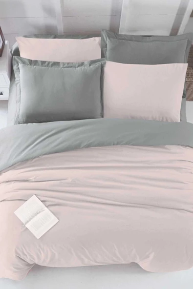 Çift Kişilik Lastikli Çarşaflı Nevresim Takımı Pamuklu Four Season Pudra Gri