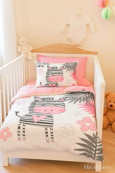 Yenidoğan Kız Bebek Nevresim Takımı %100 Pamuklu Zürafa