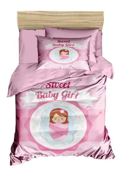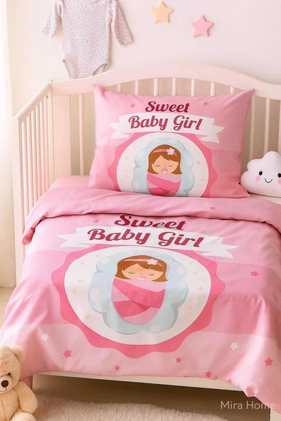 Yenidoğan Kız Bebek Nevresim Takımı %100 Pamuklu Sweet Baby Girl