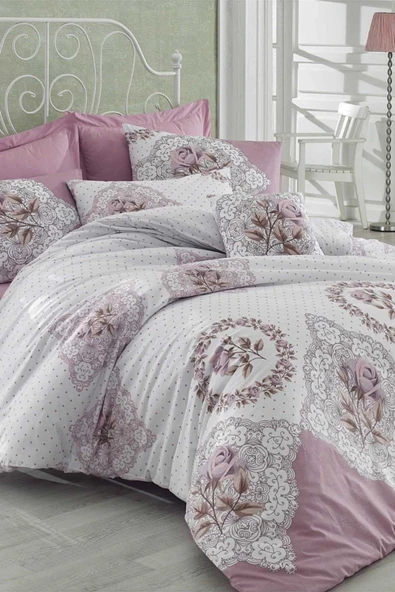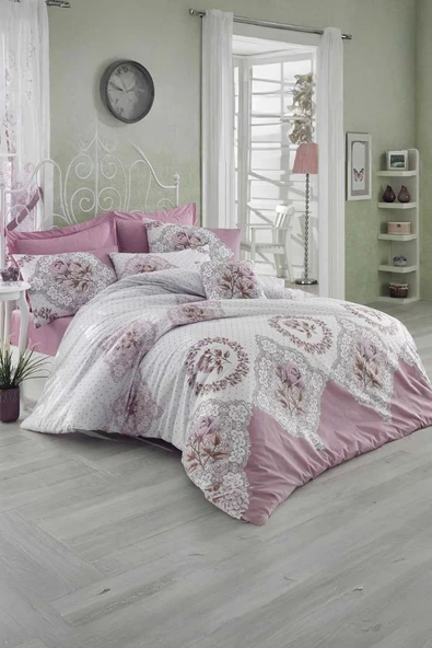 Çift Kişilik Ranforce Nevresim Takımı %100 Pamuklu Şimal Pembe