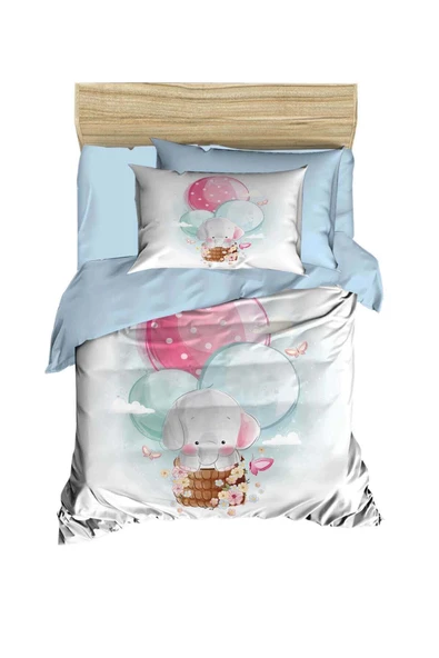 Dijital Baskılı 3d Pamuklu Yenidoğan Bebek Nevresim Takımı Elephant Baloon Blue