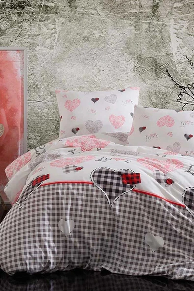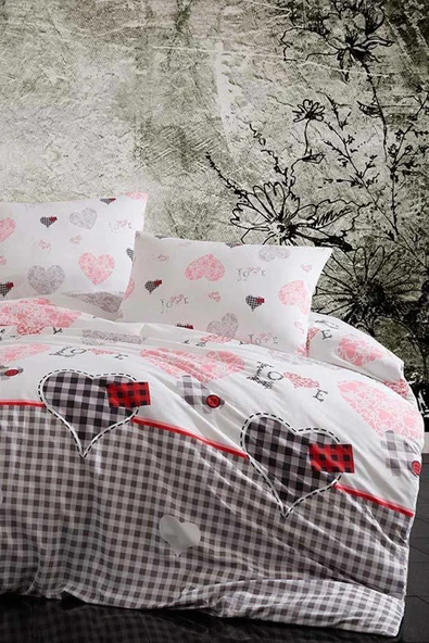 Çift Kişilik Lastikli Çarşaflı Pamuklu Nevresim Takımı Patchwork Love